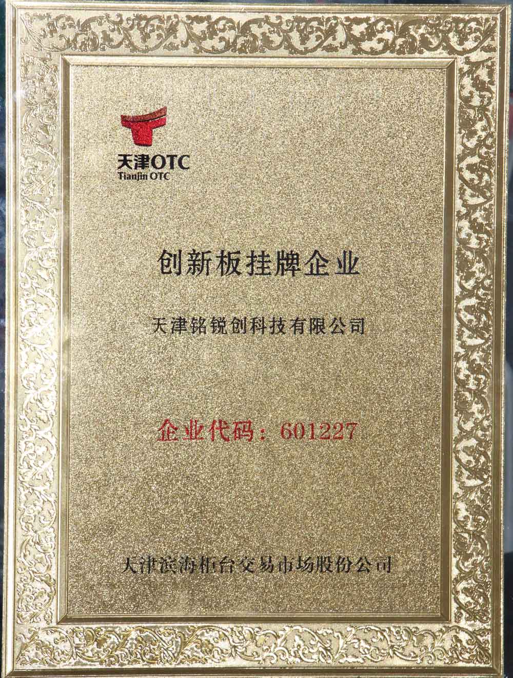 恭喜我公司成功登陸天津市高新區創新板掛牌企業